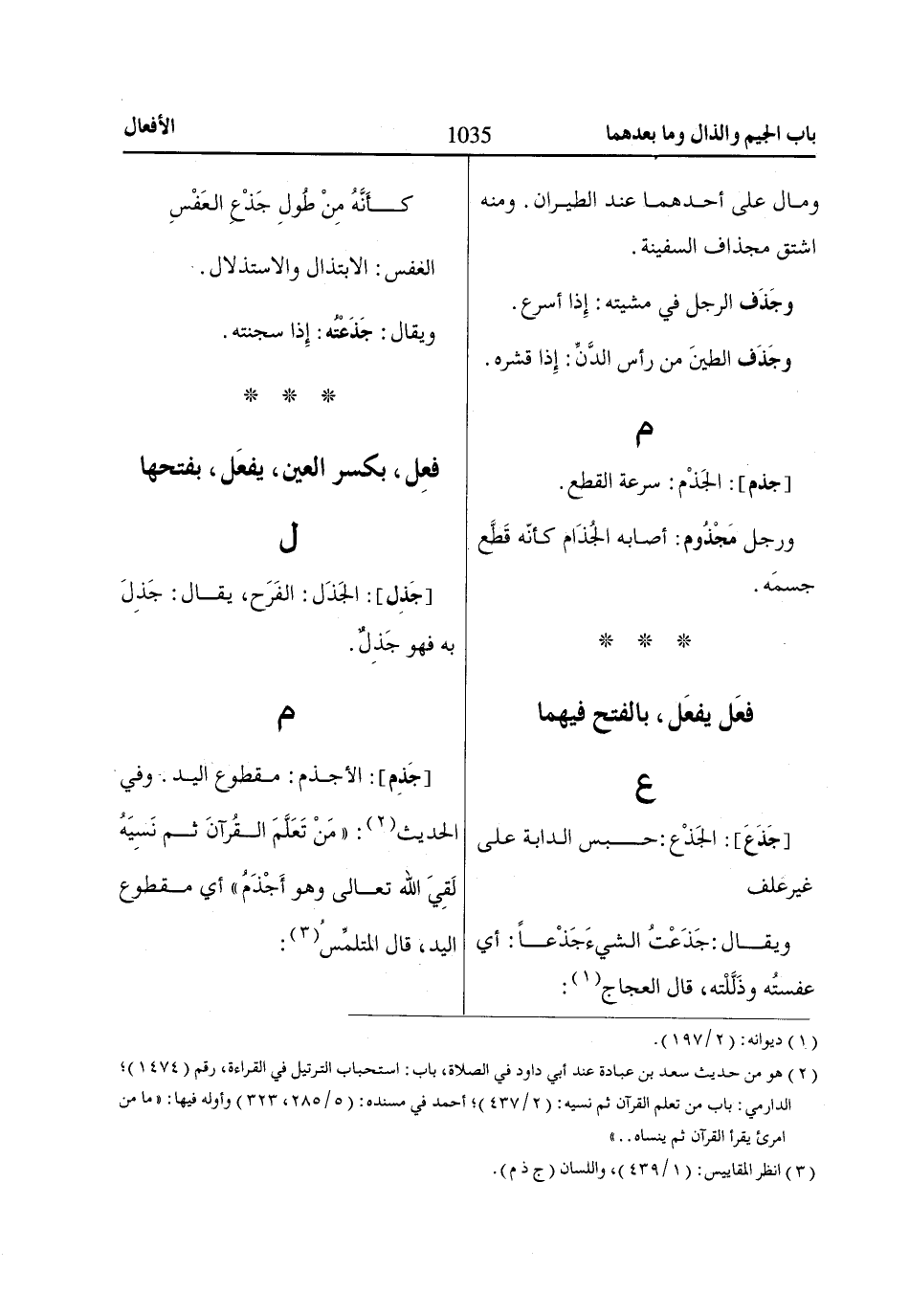 (3) انظر المقاييس: (1/ 439)، واللسان (ج ذ م).