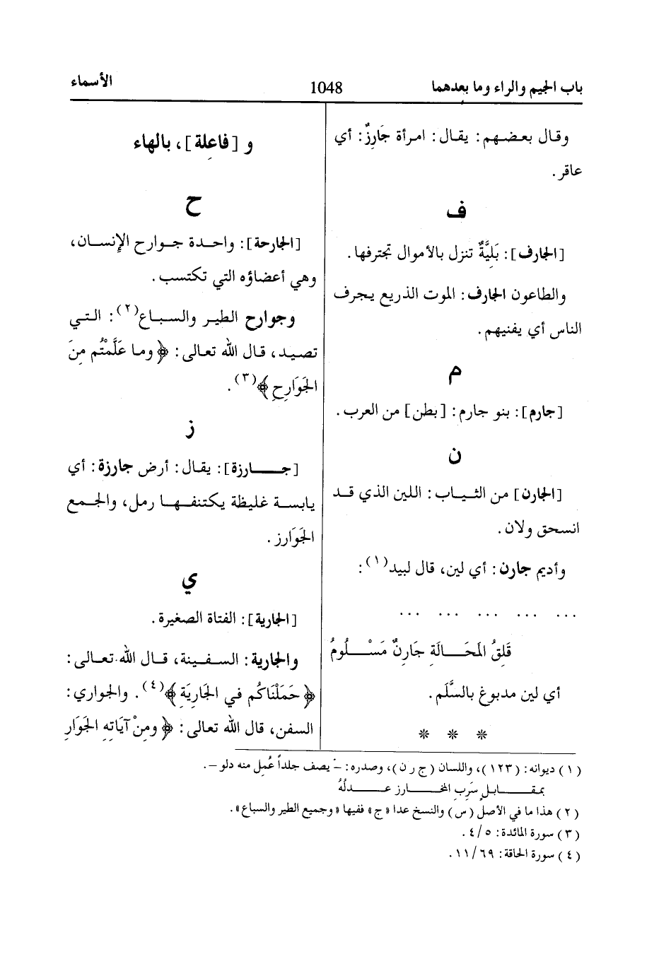 [الجارحة]: واحدة جوارح الإِنسان، وهي أعضاؤه التي تكتسب.