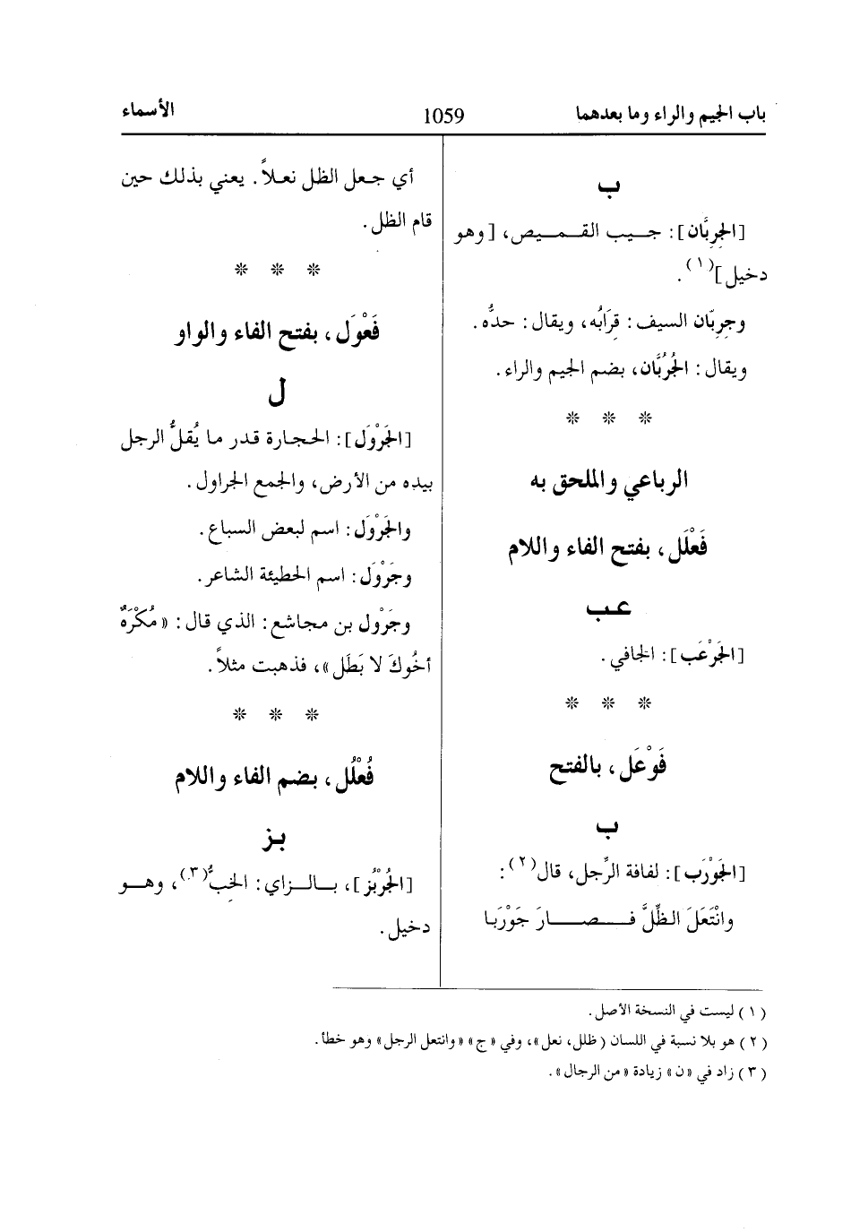 [الجُرْبُز]، بالزاي: الخِبُّ «3»، وهو دخيل.
