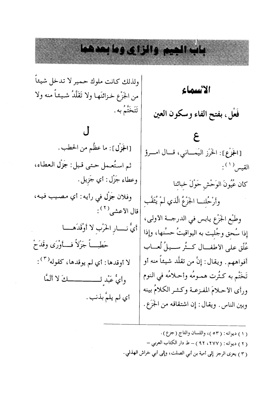 [الجَزْع]: الخَرَز اليَماني، قال امرؤ القيس «1»: