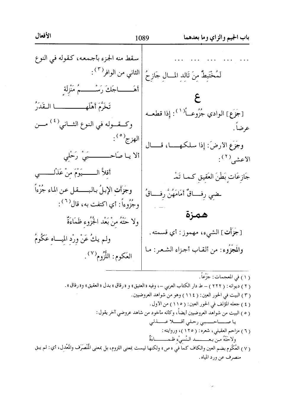 (3) البيت في الحور العين: (114) وهو من شواهد العروضيين.