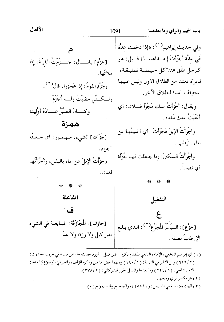 (3) البيت بلا نسبة في المقاييس: (1/ 455)، والصحاح واللسان (ج ز م).