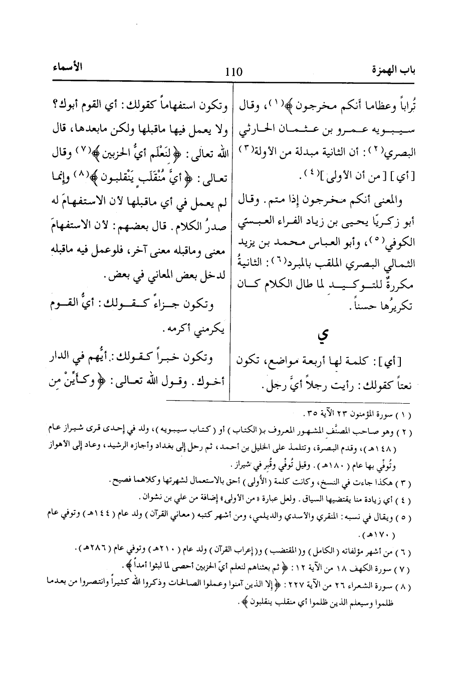 (6) من أشهر مؤلفاته (الكامل) و (المقتضب) و (إِعراب القرآن) ولد عام (210 هـ‍) وتوفي عام (286 هـ‍).