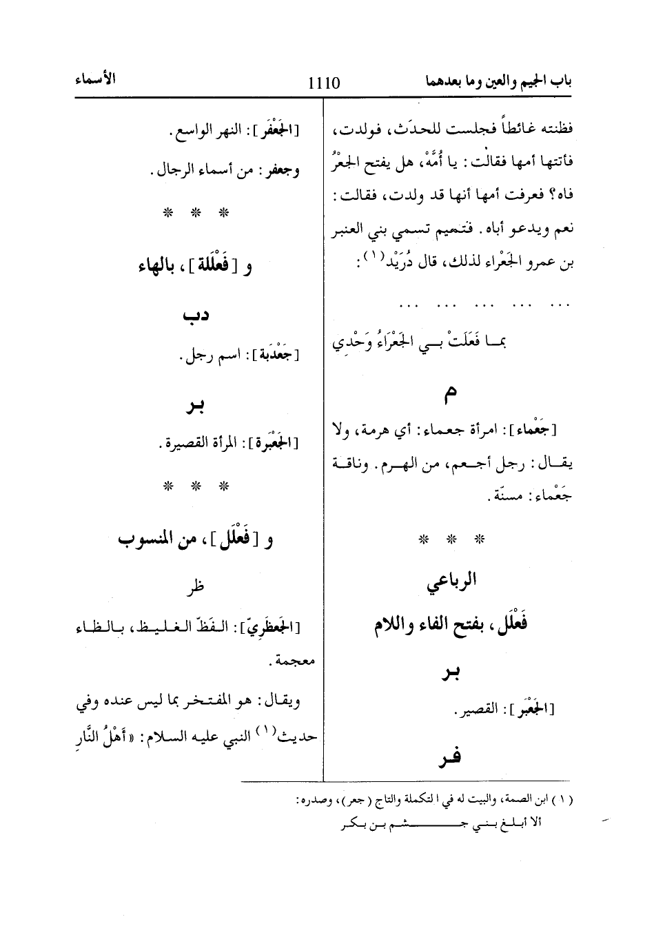 (1) ابن الصمة، والبيت له في التكملة والتاج (جعر)، وصدره:
