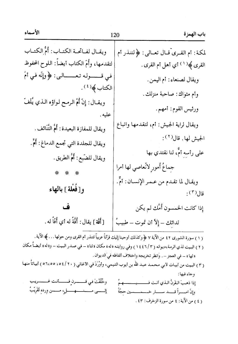 ويقال لفاتحة الكتاب: أُمُّ الكتاب لتقدمها، وأُمّ الكتاب أيضاً: اللوح المحفوظ في قوله تعالى: وَإِنَّهُ فِي أُمِّ الْكِتاابِ «4».