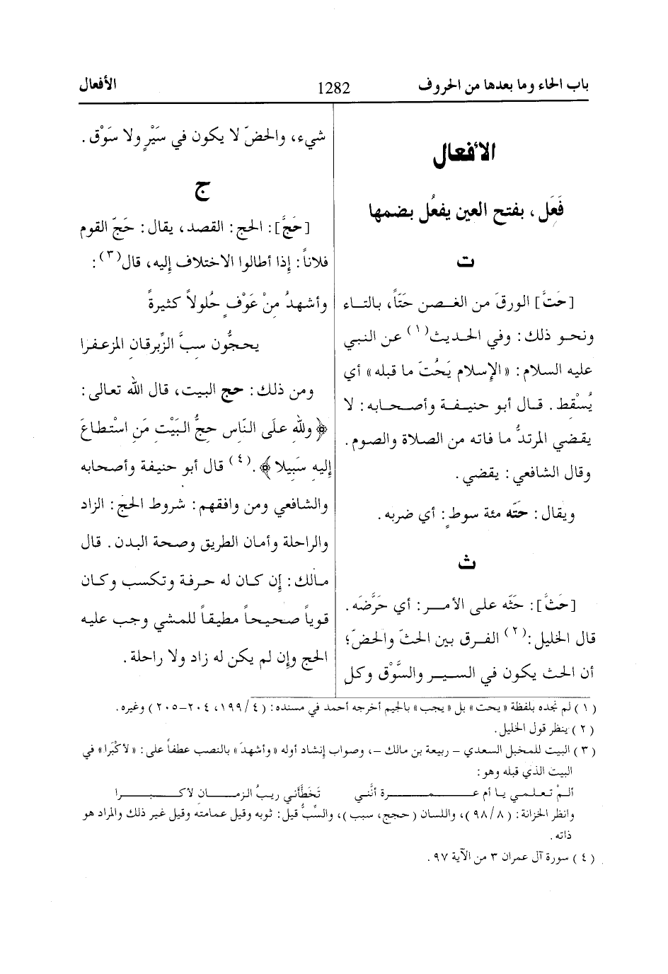 [حَجَّ]: الحج: القصد، يقال: حَجّ القوم فلاناً: إِذا أطالوا الاختلاف إِليه، قال «3»: