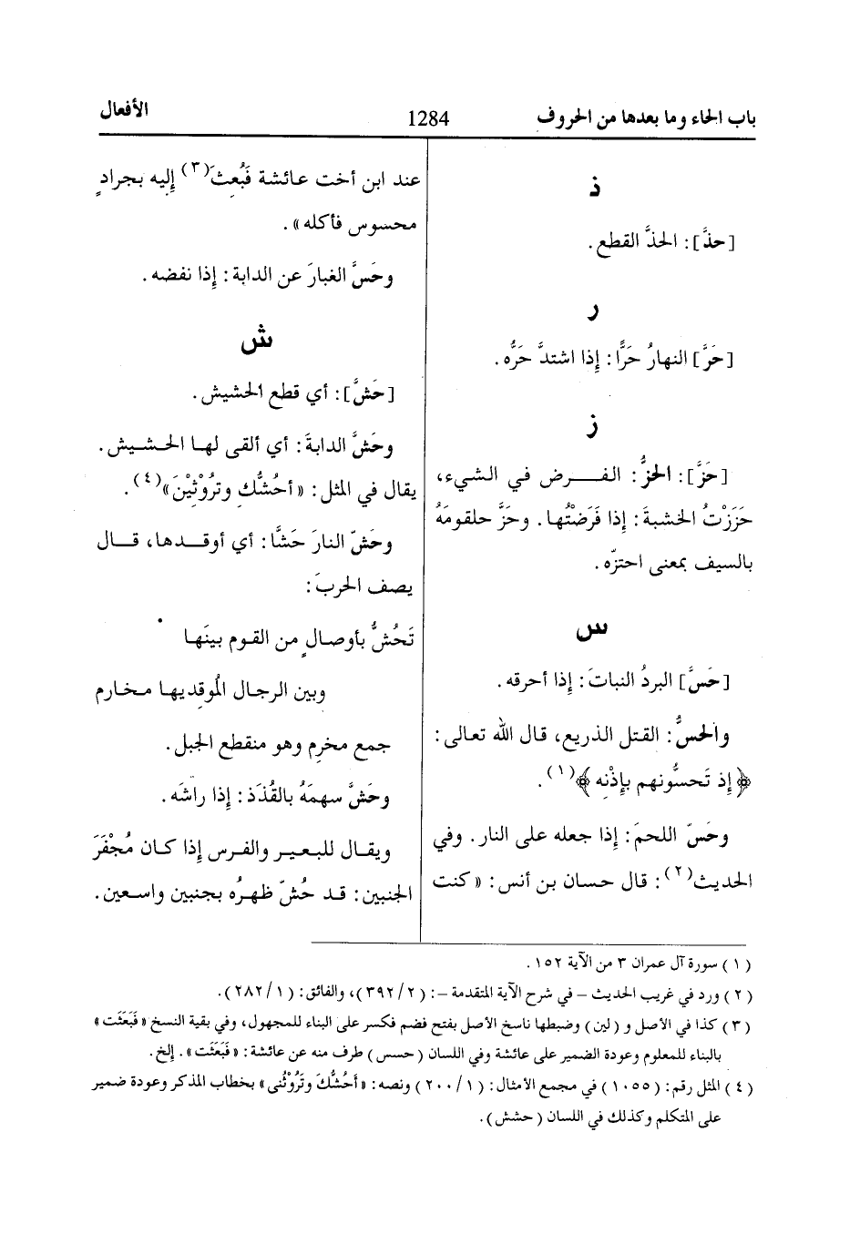 (3) كذا في الأصل و (لين) وضبطها ناسخ الأصل بفتح فضم فكسر على البناء للمجهول، وفي بقية النسخ «فَبَعَثَت» بالبناء للمعلوم وعودة الضمير على عائشة وفي اللسان (حسس) طرف منه عن عائشة: «فَبَعَثَت». إِلخ.