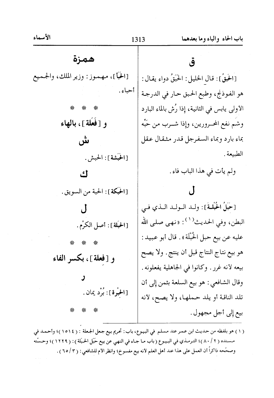 وفي الحديث «1»: «نهى صلى الله عليه عن بيع حبل الحُبْلَة»