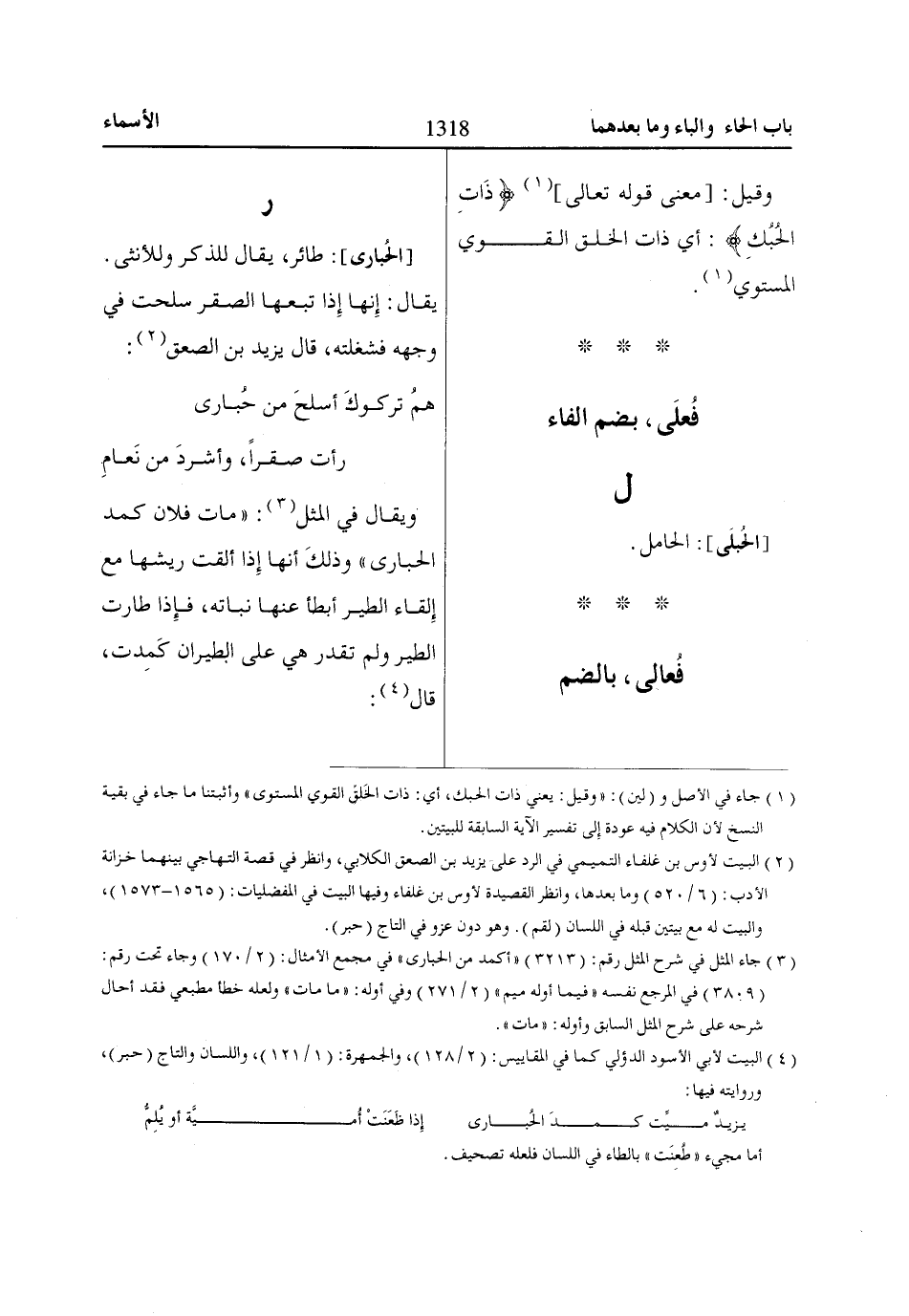 (4) البيت لأبي الأسود الدؤلي كما في المقاييس: (2/ 128)، والجمهرة: (1/ 121)، واللسان والتاج (حبر)، وروايته فيها:
