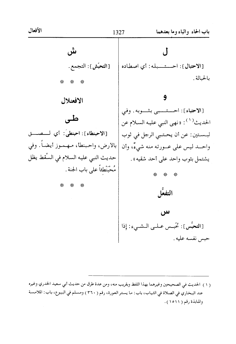 [الاحبنطاء]: احبنطىَ: أي لصق بالأرض، واحبنطأ، مهموز أيضاً.