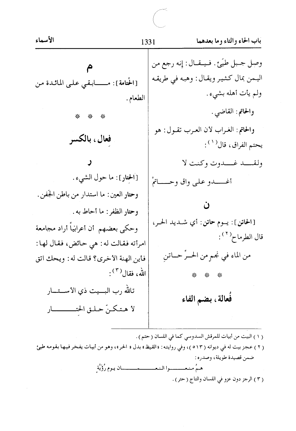 (1) البيت من أبيات للمرقش السدوسي كما في اللسان (حتم).