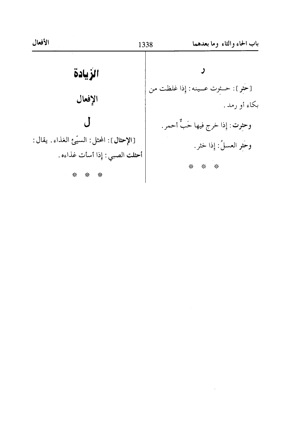 أحثلت الصبي: إِذا أسأت غذاءه.