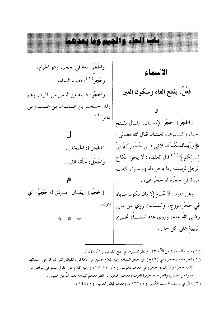 (2) انظر مادة (حجر) في (التاج) عن حجر اليمامة وفيه كلام حسن عن الأماكن والقبائل التي تدخل في أسمائها كلمة حجر، وكذلك (الحجر) في معجم ياقوت: (2/ 220 - 223) وفيه كلام عن حلول البدو في مواطن من بادوا من الحضر، وانظر صفة جزيرة العرب ومعجم الحجري. وانظر معجم اليمامة لعبد اللّاه بن خميس.