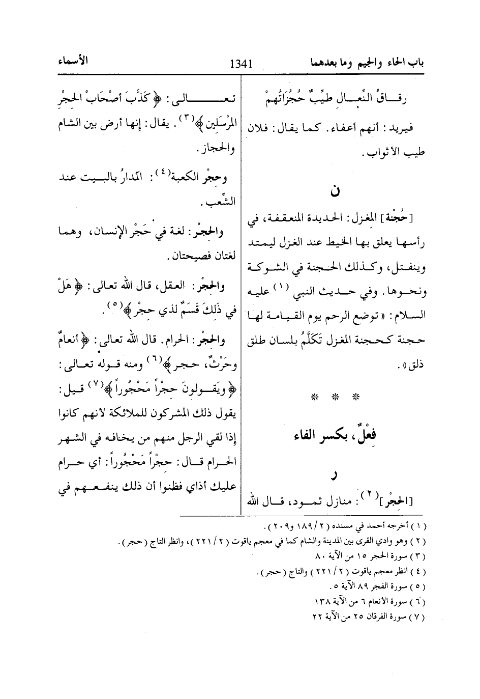 (4) انظر معجم ياقوت (2/ 221) والتاج (حجر).