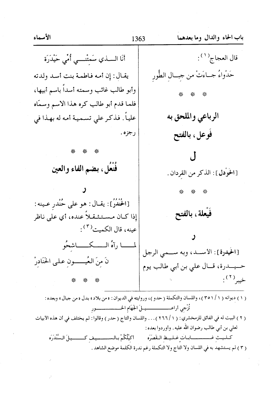 (2) البيت له في الفائق للزمخشري: (1/ 266) ... واللسان والتاج (حدر) وقالوا: لم يختلف في أن هذه الأبيات لعلي بن أبي طالب رضوان اللّاه عليه. وأوردوا بعده: