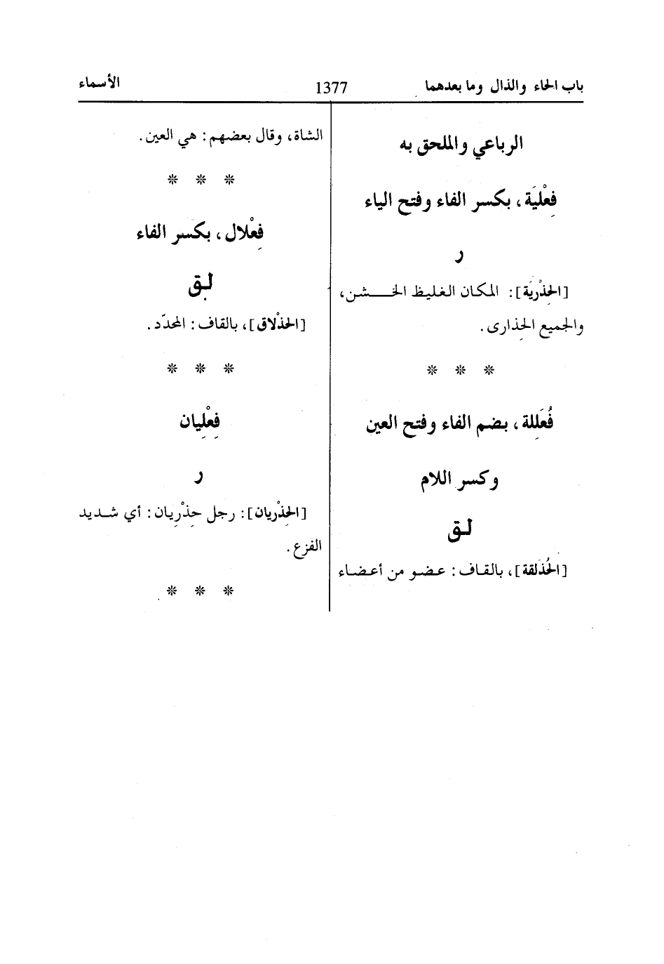 [الحُذَلقة]، بالقاف: عضو من أعضاء الشاة، وقال بعضهم: هي العين.