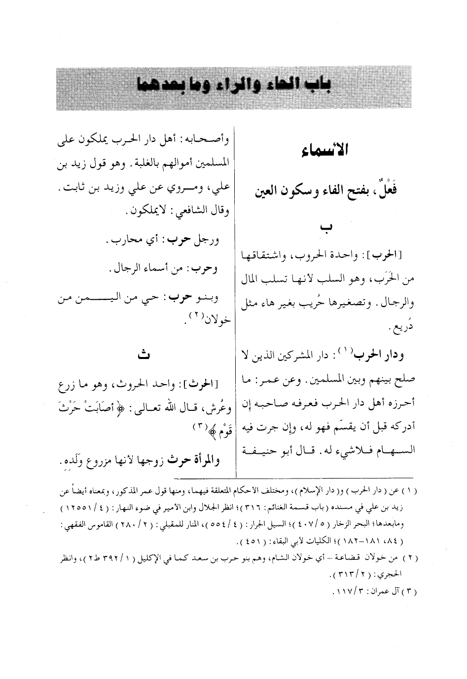 (1) عن (دار الحرب) و (دار الإِسلام)، ومختلف الأحكام المتعلقة فيهما، ومنها قول عمر المذكور، وبمعناه أيضاً عن زيد بن علي في مسنده (باب قسمة الغنائم: 316)؛ انظر الجلال وابن الأمير في ضوء النهار: (4/ 12551) وما بعدها؛ البحر الزخار (5/ 407)؛ السيل الجرار: (4/ 554)، المنار للمقبلي: (2/ 280) القاموس الفقهي:
