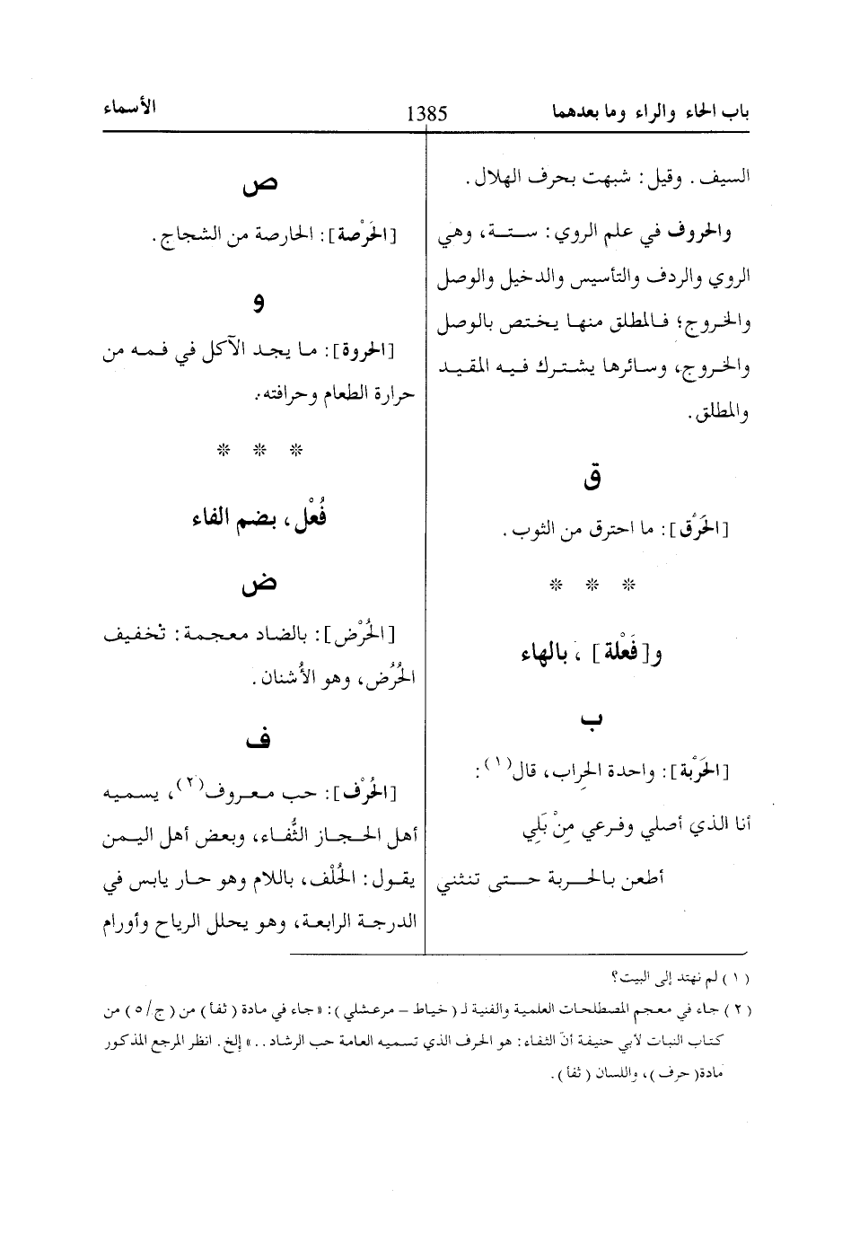 (2) جاء في معجم المصطلحات العلمية والفنية ل (خياط- مرعشلي): «جاء في مادة (ثفأ) من (ج/ 5) من كتاب النبات لأبي حنيفة أنّ الثفاء: هو الحرف الذي تسميه العامة حب الرشاد ... » إِلخ. انظر المرجع المذكور مادة (حرف)، واللسان (ثفأ).