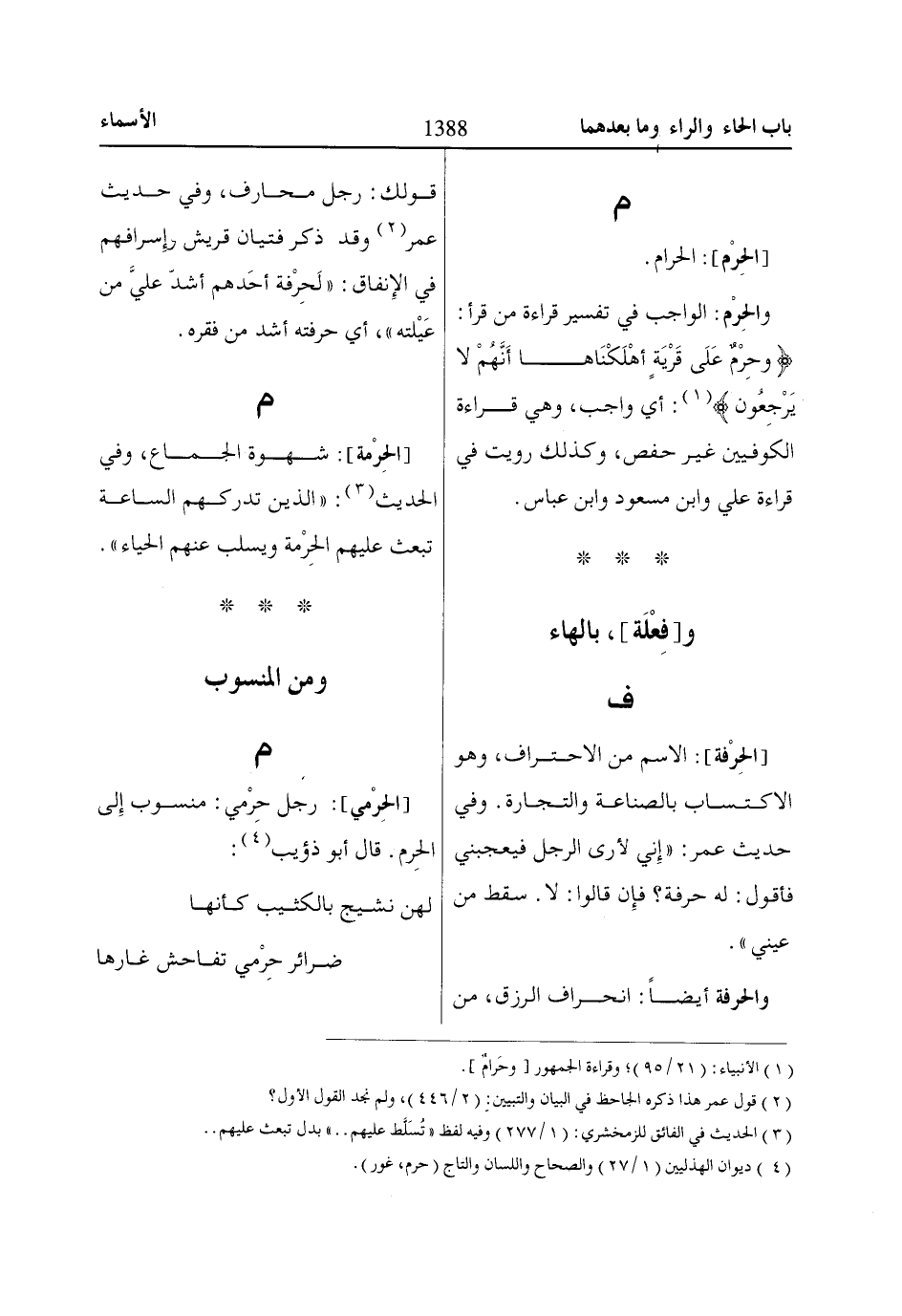 (4) ديوان الهذليين (1/ 27) والصحاح واللسان والتاج (حرم، غور).