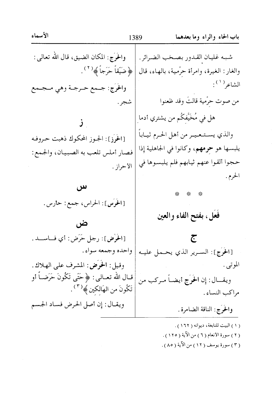 [الحَرَج]: السرير الذي يحمل عليه الموتى.