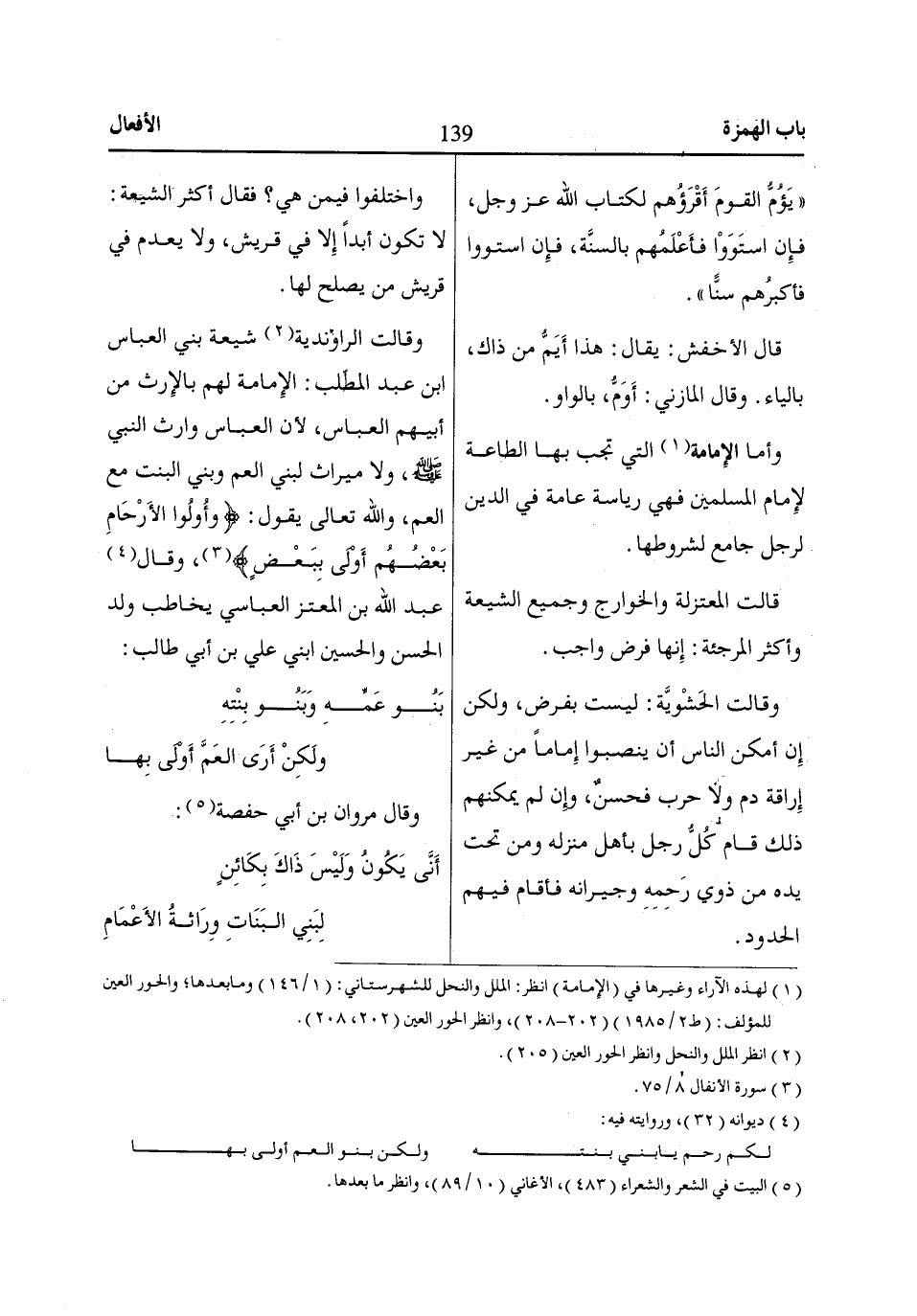 (1) لهذه الآراء وغيرها في (الإِمامة) انظر: الملل والنحل للشهرستاني: (1/ 146) وما بعدها؛ والحور العين للمؤلف: (ط 2/ 1985) (202 - 208)، وانظر الحور العين (202، 208).