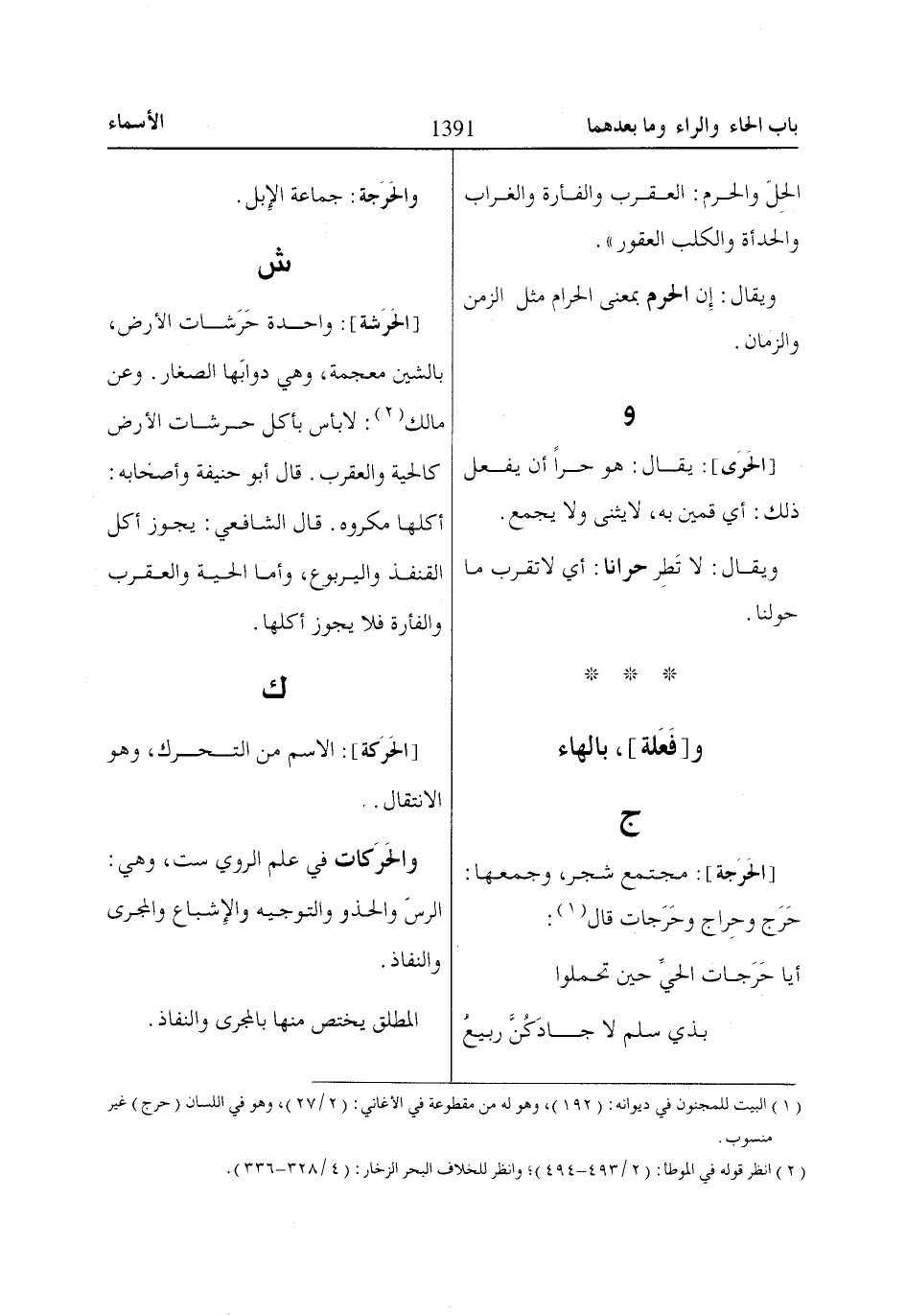 [الحَرَشة]: واحدة حَرَشات الأرض، بالشين معجمة، وهي دوابّها الصغار. وعن مالك «2»: لا بأس بأكل حرشات الأرض كالحية والعقرب. قال أبو حنيفة وأصحابه: