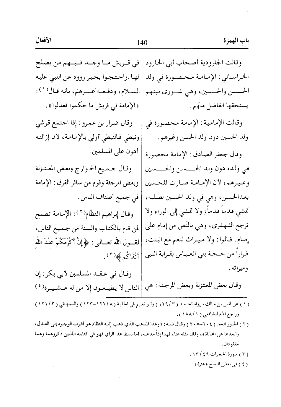 (2) الحور العين (204 - 205) وقال فيه: «وهذا المذهب الذي ذهب إِليه النظام هو أقرب الوجوه إِلى العدل، وأبعدها عن المحاباة»، وقال مثله هنا، فهذا إِذاً مذهبه، أما بسط هذا الرأي فهو في كتابيه اللذين ذكروهما وهما مفقودان.