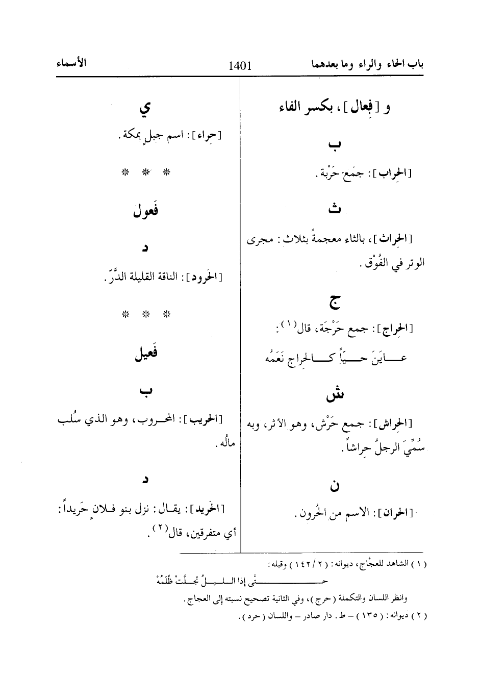 وانظر اللسان والتكملة (حرج)، وفي الثانية تصحيح نسبته إِلى العجاج.