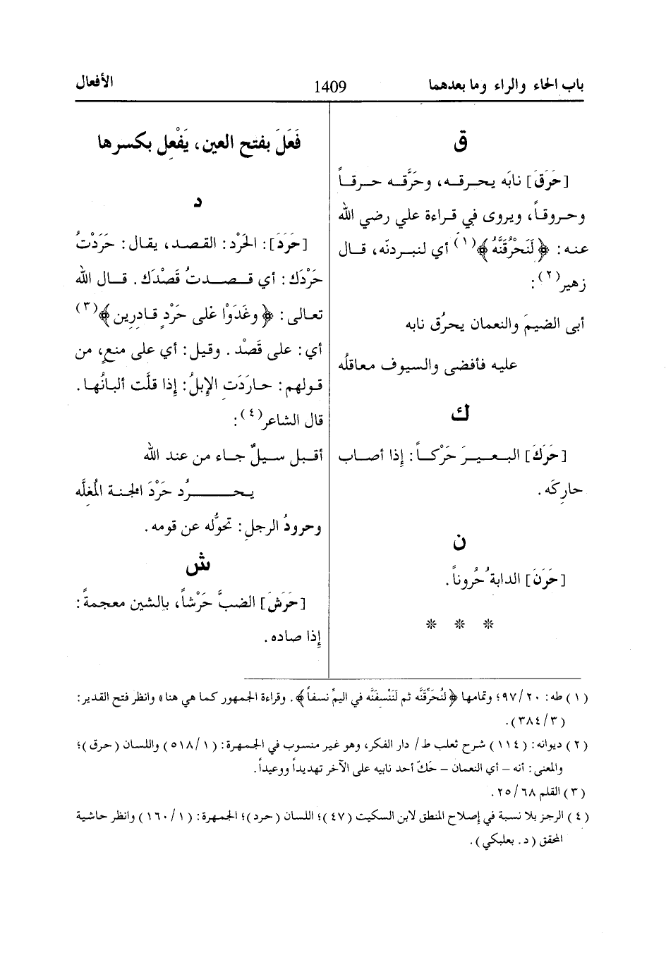 (4) الرجز بلا نسبة في إِصلاح المنطق لابن السكيت (47)؛ اللسان (حرد)؛ الجمهرة: (1/ 160) وانظر حاشية المحقق (د. بعلبكي).