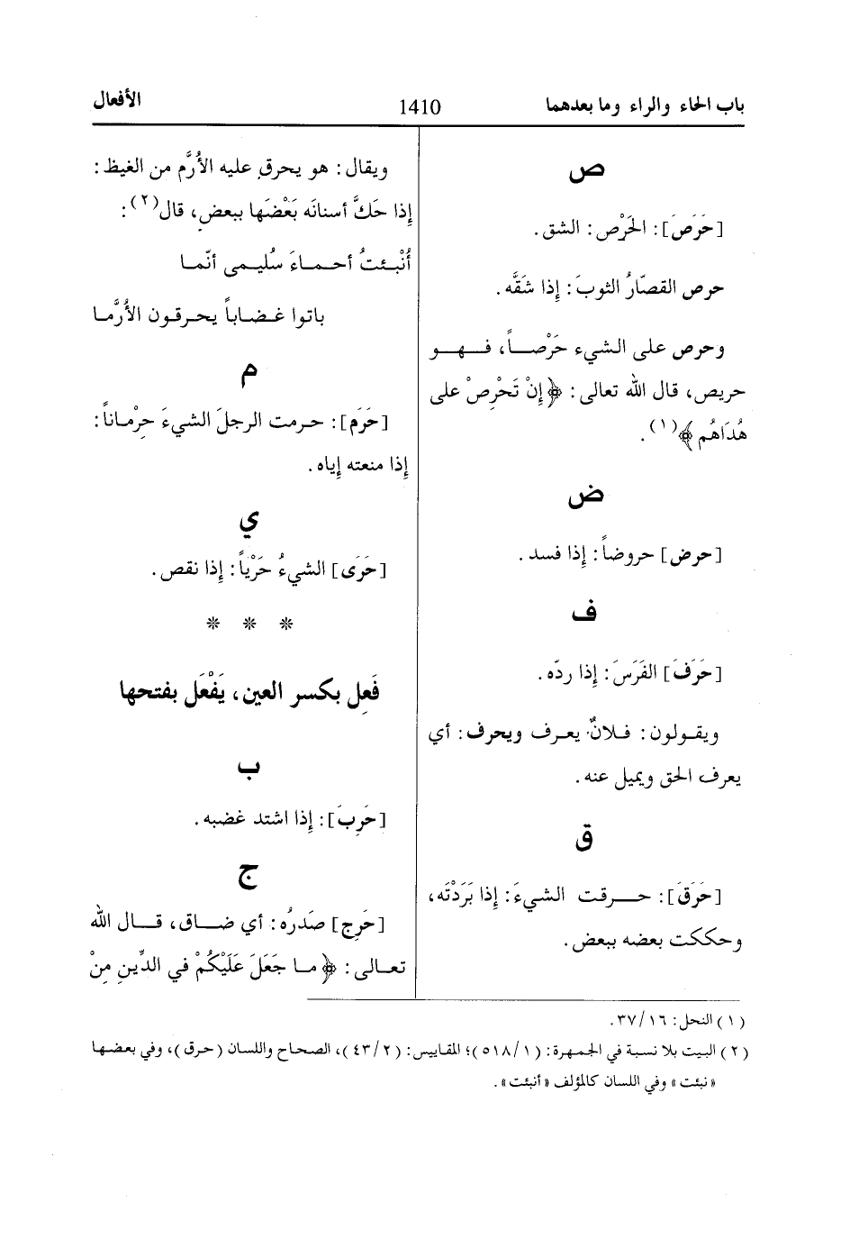 (2) البيت بلا نسبة في الجمهرة: (1/ 518)؛ المقاييس: (2/ 43)، الصحاح واللسان (حرق)، وفي بعضها «نبئت» وفي اللسان كالمؤلف «أنبئت».