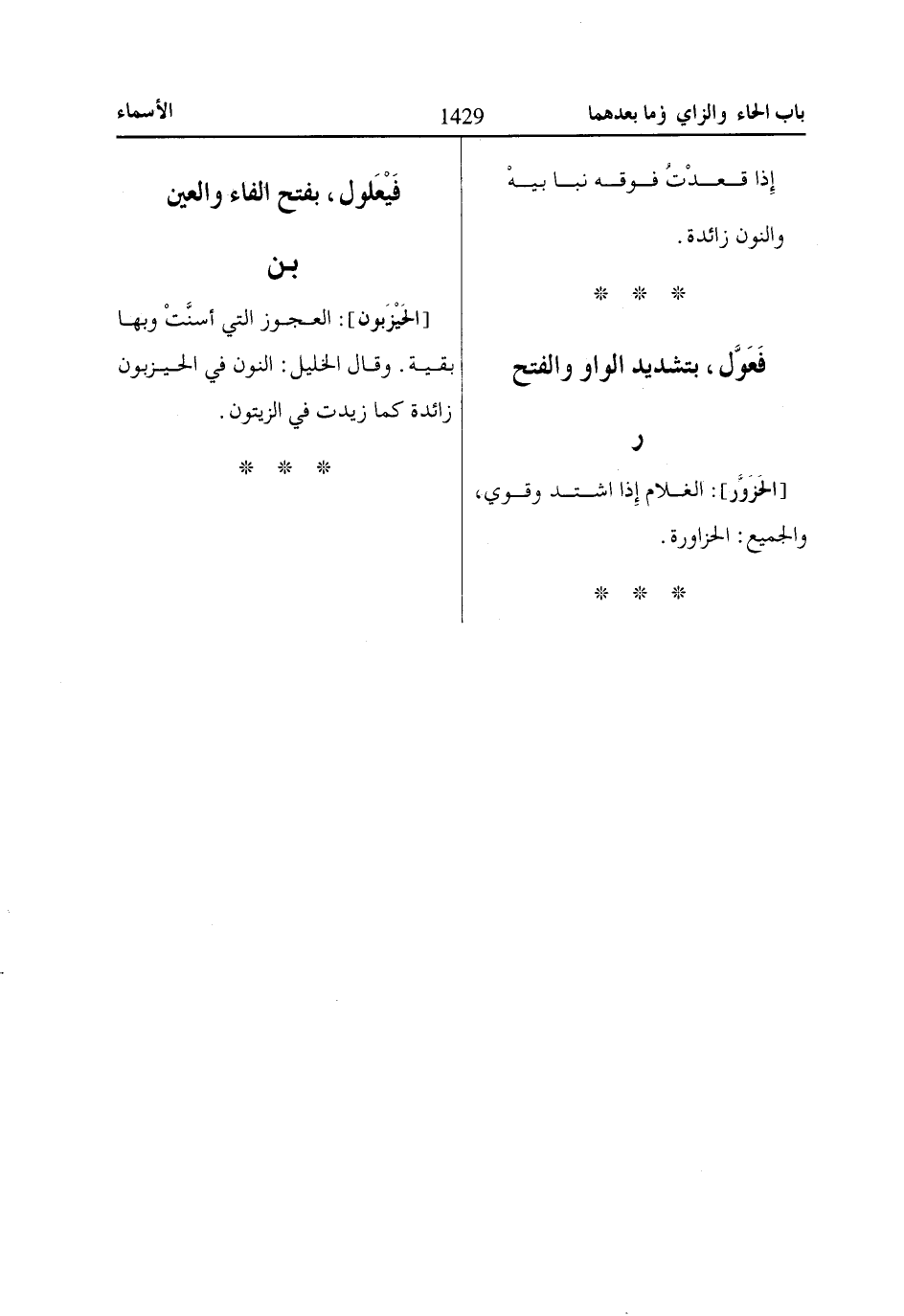 [الحَزَوَّر]: الغلام إِذا اشتد وقوي، والجميع: الحزاورة.