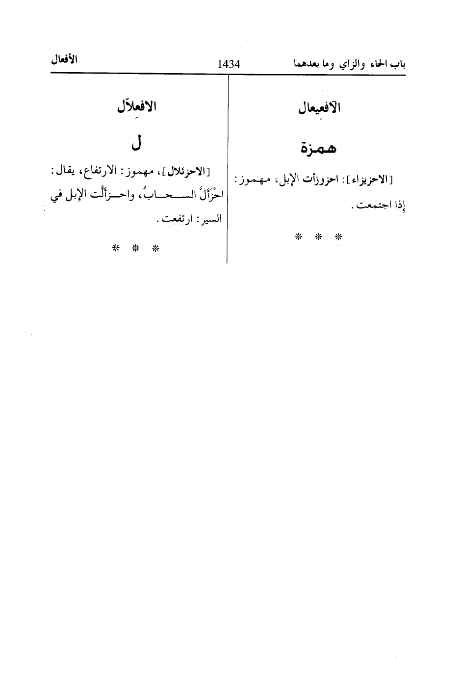 [الاحزيزاء]: احزوزأت الإِبل، مهموز: