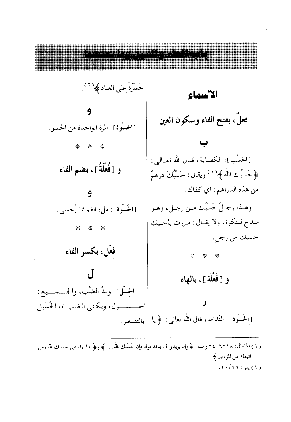 حَسْبَكَ اللّاهُ* «1» ويقال: حَسْبُكَ درهمٌ من هذه الدراهم: أي كفاك.