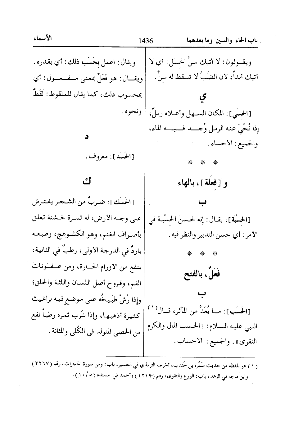 [الحَسَب]: ما يُعَدُّ من المآثر،