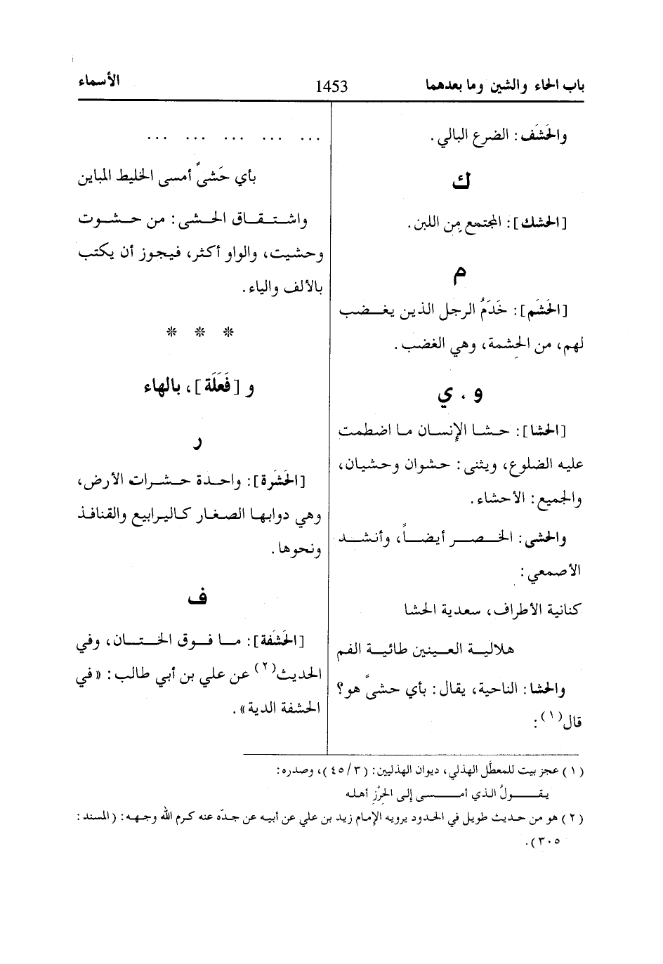 واشتقاق الحشى: من حشوت وحشيت، والواو أكثر، فيجوز أن يكتب بالألف والياء.