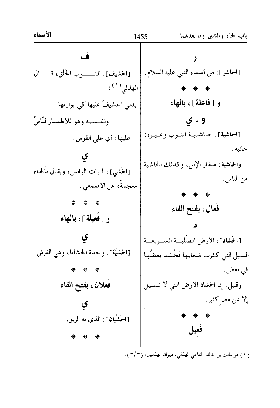 [الحَشاد]: الأرض الصُّلبة السريعة السيل التي كثرت شعابها فَحُشد بعضُها في بعض.