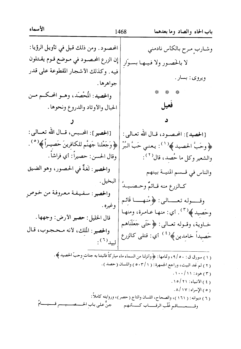 (2) لم نجد البيت، وراجع الجمهرة: (1/ 503) واللسان (حصد).