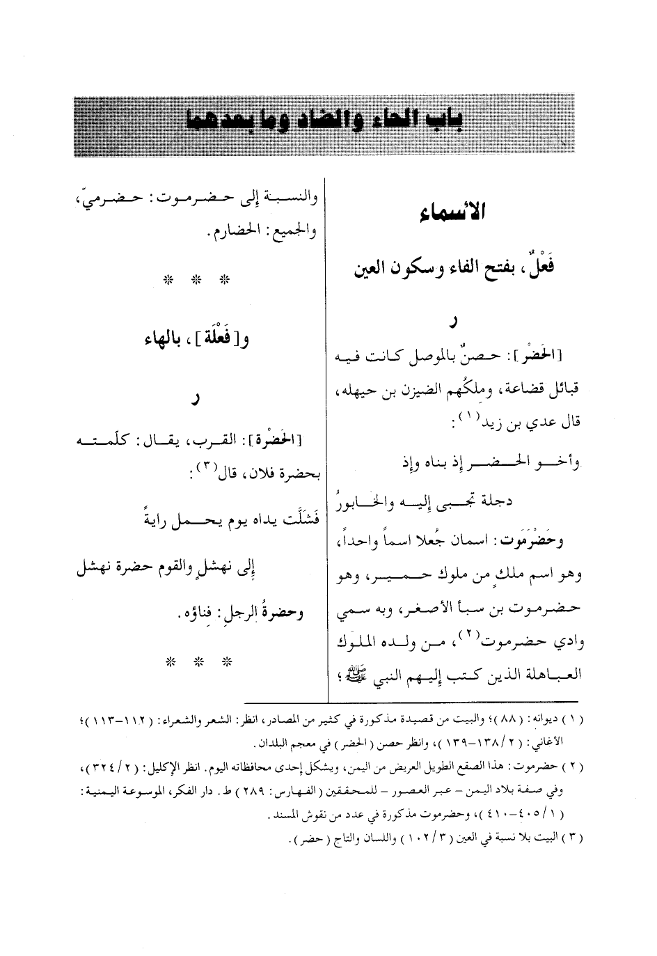 (3) البيت بلا نسبة في العين (3/ 102) واللسان والتاج (حضر).