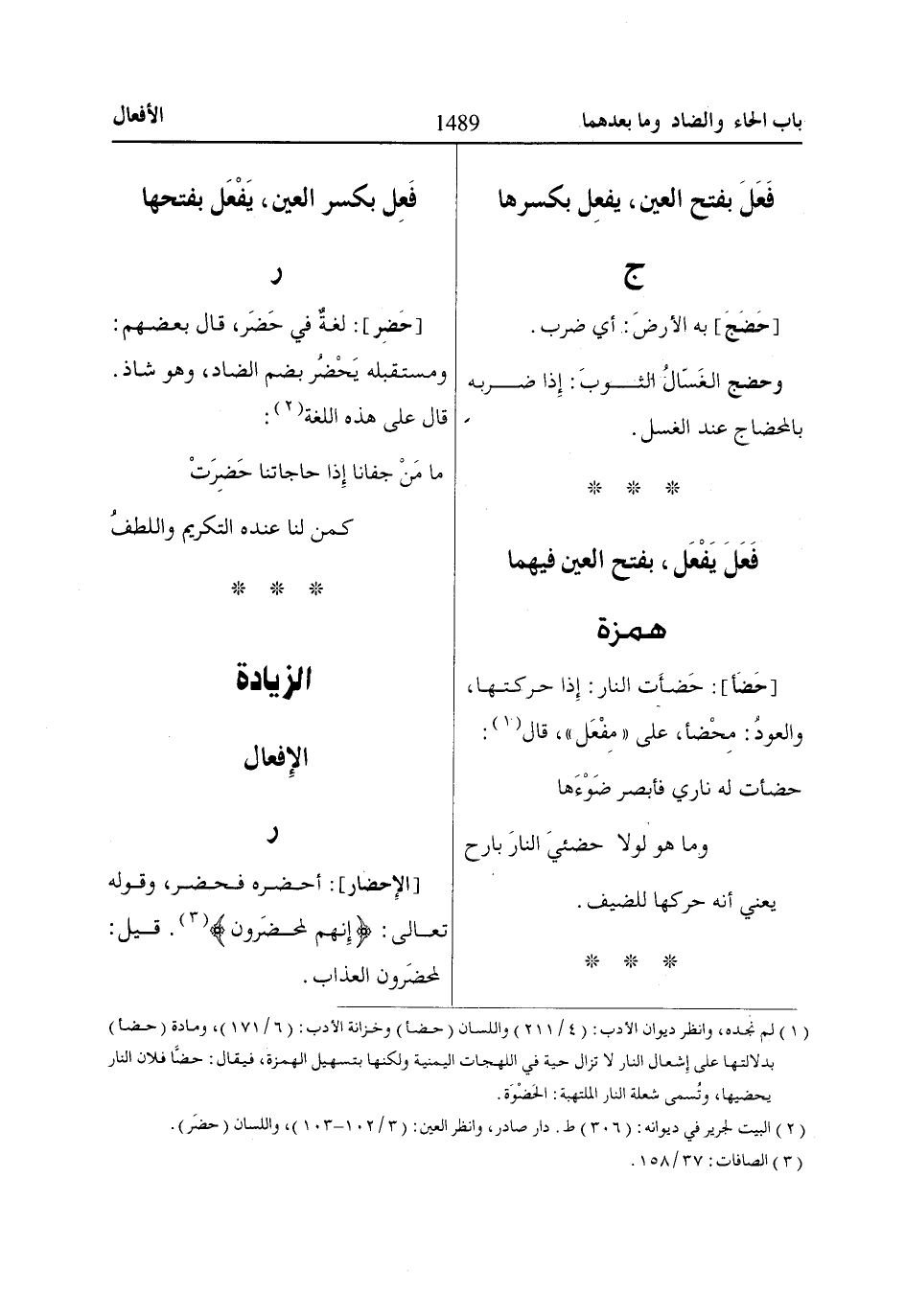 (2) البيت لجرير في ديوانه: (306) ط. دار صادر، وانظر العين: (3/ 102 - 103)، واللسان (حضَر).