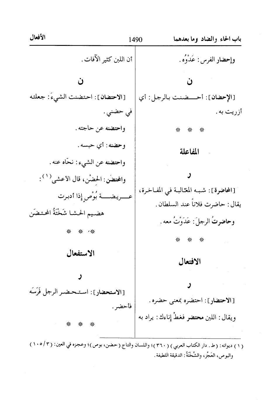 (1) ديوانه: (ط. دار الكتاب العربي) (360)؛ واللسان والتاج (حضن، بوص)؛ وعجزه في العين: (3/ 105).