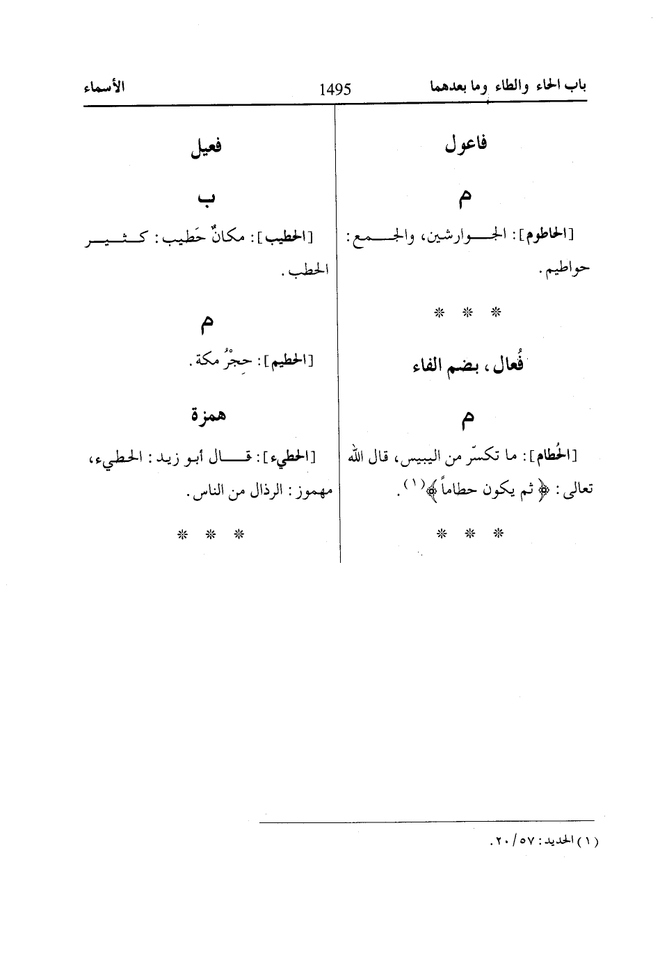 [الحُطام]: ما تكسّر من اليبيس، قال الله تعالى: ثُمَّ يَكُونُ حُطااماً «1».