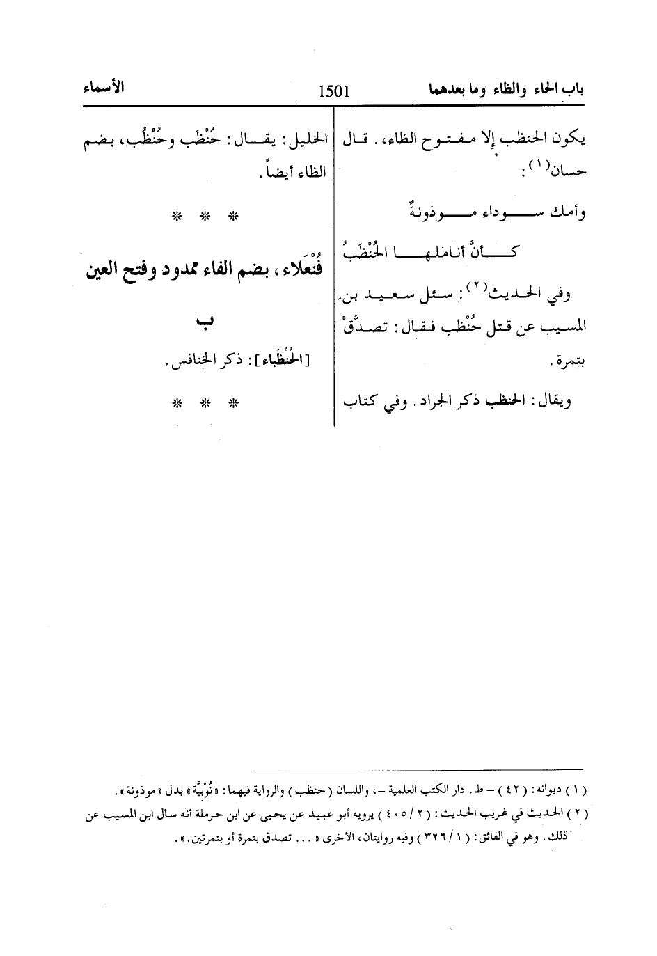 يكون الحنظب إِلا مفتوح الظاء،. قال حسان «1»: