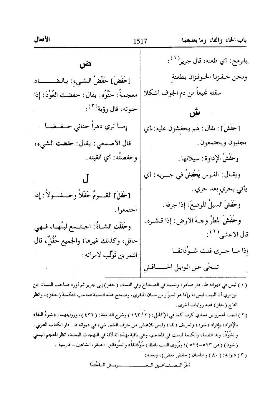 (1) ليس في ديوانه ط. دار صادر، ونسبه في الصحاح وفي اللسان (حفز) إِلى جرير ثم أورد صاحب اللسان عن ابن بري أن البيت ليس له وإِنما هو لسوّار بن حيان المنقري، وصحح هذه النسبة صاحب التكملة (حفز)، وانظر التاج (حفز) ففيه روايات أخرى.
