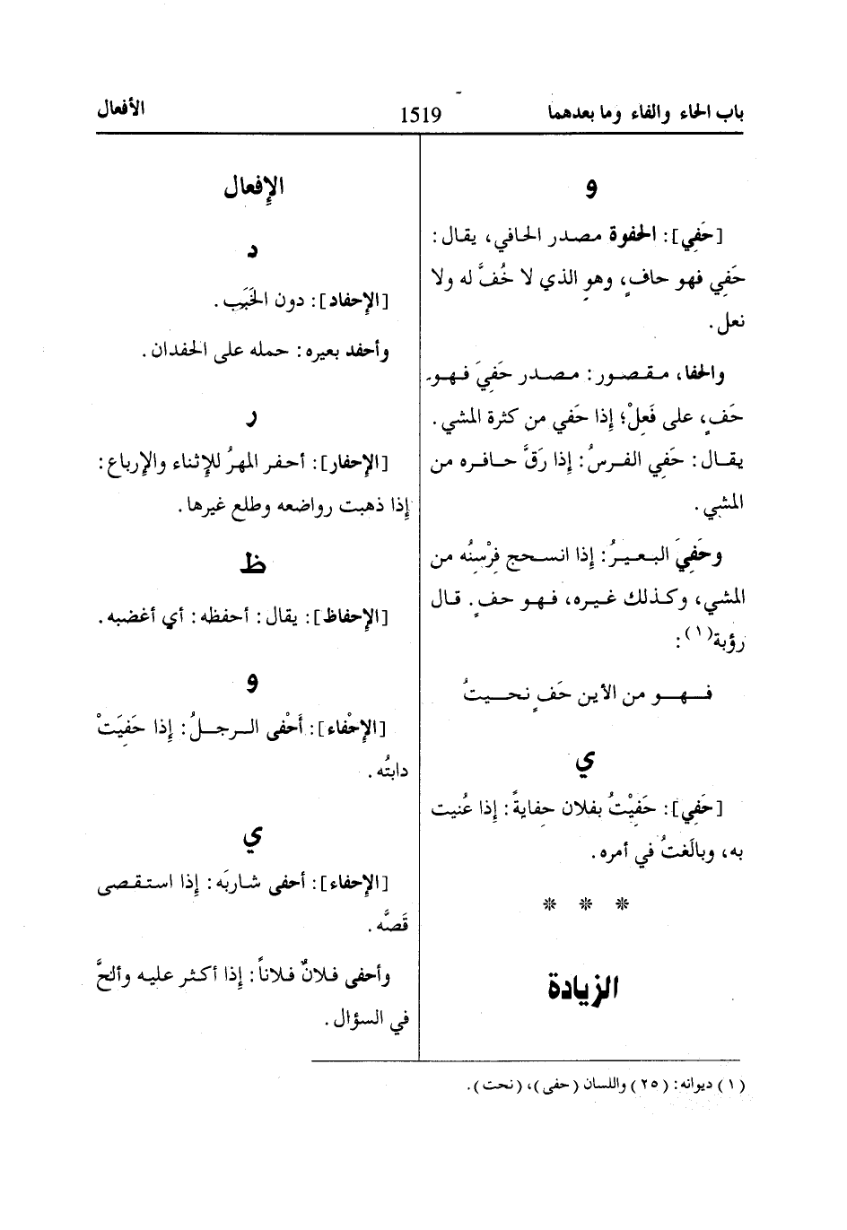(1) ديوانه: (25) واللسان (حفى)، (نحت).