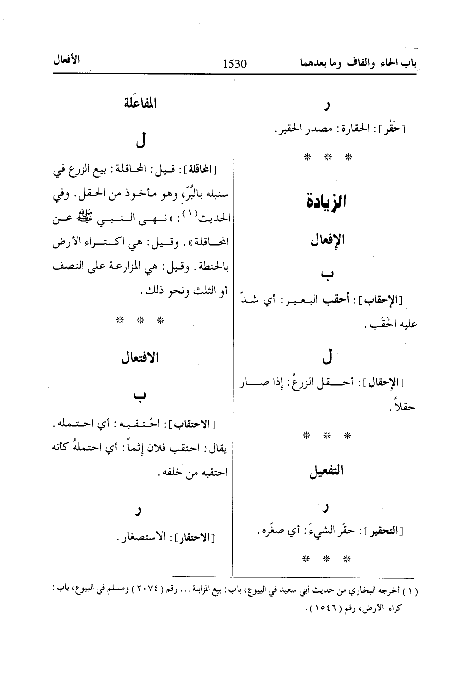وفي الحديث «1»: «نهى النبي صلّى الله عليه وسلم عن المحاقلة»