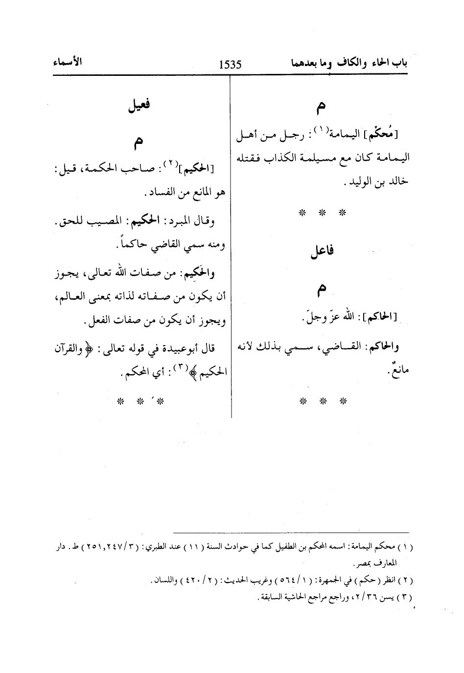 (2) انظر (حكم) في الجمهرة: (1/ 564) وغريب الحديث: (2/ 420) واللسان.