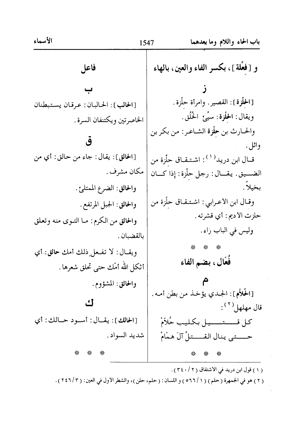 (2) هو في الجمهرة (حلم) (1/ 566) واللسان: (حلم، حلن)، والشطر الأول في العين: (3/ 246).