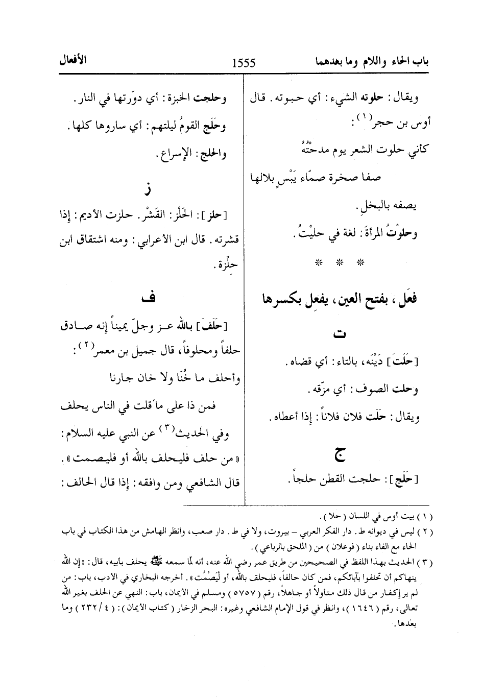(2) ليس في ديوانه ط. دار الفكر العربي- بيروت، ولا في ط. دار صعب، وانظر الهامش من هذا الكتاب في باب الحاء مع الفاء بناء (فوعلان) من (الملحق بالرباعي).