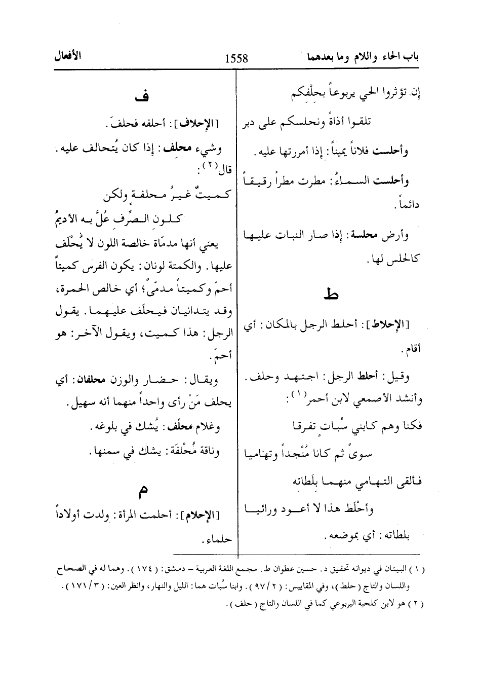 (2) هو لابن كلحبة اليربوعي كما في اللسان والتاج (حلف).