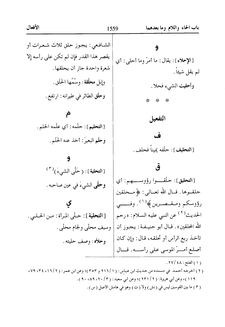وفي الحديث «2» عن النبي عليه السلام: «رحم اللّاه المحلقين»
